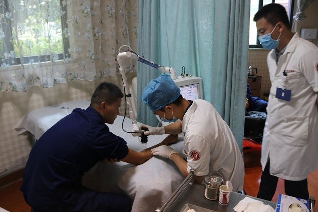 图说:杭州整形医院医生团队给消防员提供激光手术