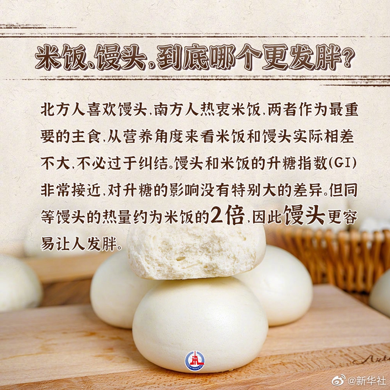 在我们的传统饮食中,很大一部分是由米、面这些主食组成的。但小伙伴们关于主食的争议越来越多,比如吃太多主食会导致肥胖、糖尿病要少吃主食等等。但不吃主食对健康真的好吗?米饭和馒头哪个更发胖?戳图,一起解锁主食的真相。(来源:健康时报,设计:盛瑞丽) ????