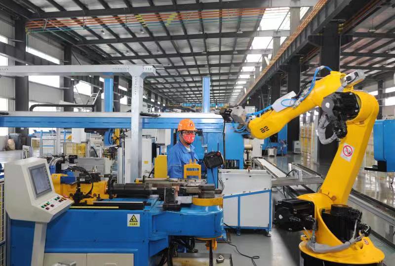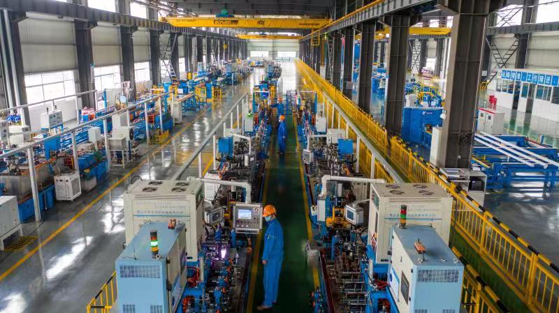 3月30日,在湖州市吴兴区八里店镇的金洲管道科技股份有限公司,工人在不锈钢车间作业。今年以来,湖州市吴兴区统筹抓好疫情防控和经济发展,持续优化政策供给,打出一系列“组合拳”,辖区400多家规上工业企业开足马力赶制订单,冲刺一季度“开门红”。