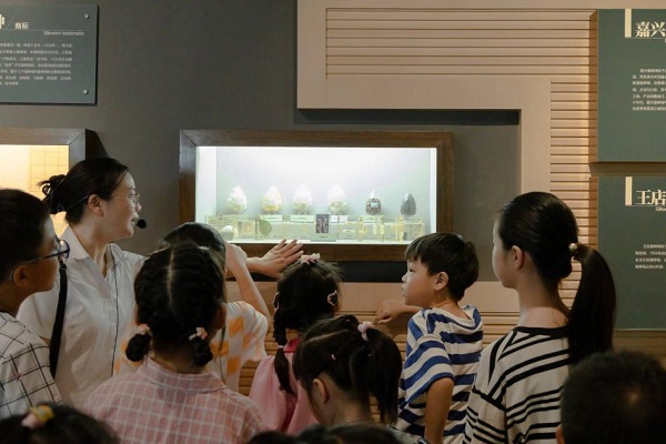 8月17日,嘉兴市秀洲区科协“红船少年走进360行”科普系列活动带着学生们来到了嘉兴丝绸博物馆,在这里了解嘉兴千年蚕桑文化及丝绸制作工艺。