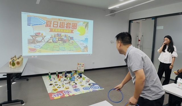 活动开始后,大家踊跃参与,轮流上阵。参与者中既有手法娴熟、屡屡命中的“套圈高手”,也有初次尝试、乐在其中的“游戏新手”。现场欢呼声、欢笑声、喝彩声此起彼伏,不绝于耳。一个个圆环在空中划出轻快的弧线,无论命中与否,都引来阵阵互动与鼓励。这一刻,员工们暂时放下工作的紧张,完全沉浸在游戏的趣味与协作的温暖中,不仅缓解了工作压力,更拉近了彼此的距离。