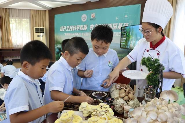 在最受欢迎的“菌菇与我们的生活”体验环节,同学们通过观察不同形态的香菇产品、品鉴香菇脆片与香菇酱,直观了解食用菌加工技术;最后,大家亲手制作菌菇包并带回家,计划记录菌菇生长全过程,在实践操作中培养科学探究习惯。