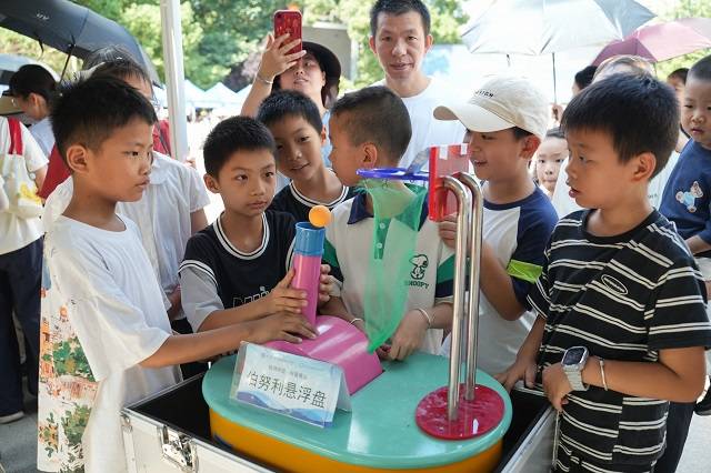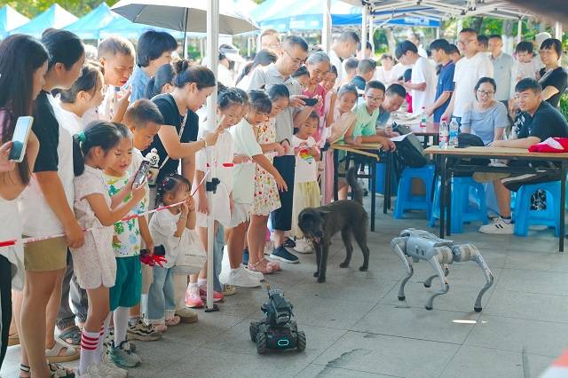 活动中,互动体验环节人气高涨。浙江省科普教育研究院、浙江光电子研究院及浙师大专家,带来满满“黑科技”。各类造型的飞行器表演:葫芦娃、太空人、滑翔机等轮番升空,灵动的姿态引得孩子们连声欢呼,家长们也纷纷掏出手机记录精彩瞬间。机器狗、机甲战车、马德堡半球实验、3D打印等科学体验活动,让孩子们在动手操作中直观感受科学的奇妙。不少带着孩子前来的家长表示,这样的广场科普活动很有意义,既能让孩子在玩乐中学习知识,也能帮成年人解决生活中的科学困惑,希望以后能多举办类似活动。