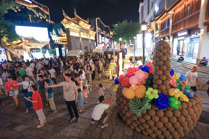 “今天傍晚的朋友圈里,都是全城园博的活动照片,我也过来体验一下。活动内容很丰富也有意思,我了解更多温州园博会的知识,明年开园一定要去现场打卡。”市民金女士在各市集面前忙着扫码参与全城园博的系列活动。现场一个直径3.5米、高2.5米的气球花篮,更是成为“网红”卡点,引得路人纷纷合影留念,市民的热情让主会场氛围感拉满,公园路成为一片欢乐的海洋。