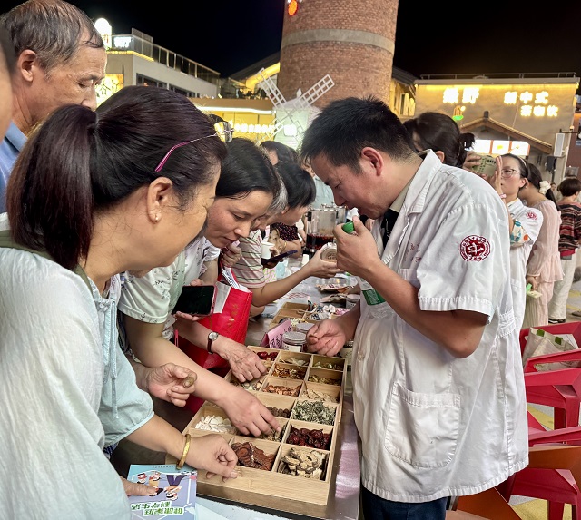 趣味互动区则将活动气氛推向高潮。“闻香识中药”、养生茶体验、中药养生锤制作、中药团扇DIY等特色项目,巧妙地将中医药知识融入文化体验之中。群众在轻松愉快的氛围里,潜移默化地学习了健康知识。