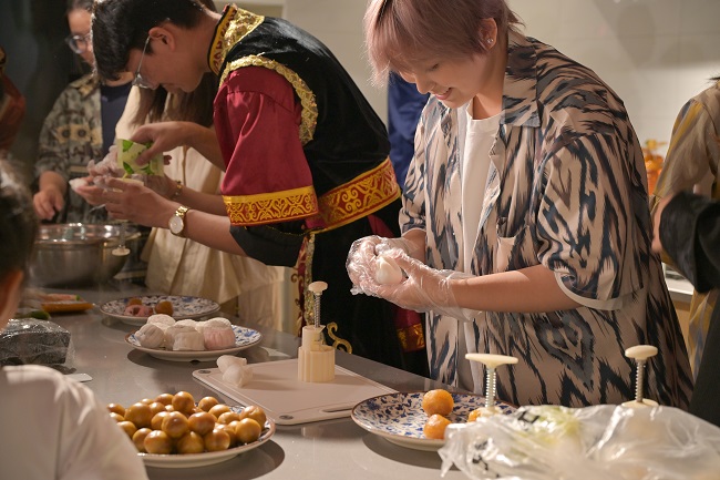 “双节同庆”的温情里,“表白”更添暖意。“量小聚”共享厨房里,人文与外语学院学生会组织多民族学子围在一起,揉面、包馅、压模,共同制作月饼,让民族情与爱国情在美味中交融。“和各族同学一起做月饼,就像和家人团圆,这是给祖国最好的祝福!”来自新疆的阿斯艳·艾拜卜拉同学捧着刚出炉的月饼说。