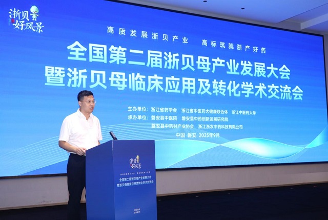 浙江省药学会理事长邵元昌在致辞中表示,浙贝母不仅是‘浙八味’之一,更是国家地理标志产品,承载着道地产区传承发展与产业共富的使命。他提出,要让浙贝母真正成为“医生首选、用户信赖、医保支持、产业繁荣”的金字招牌。