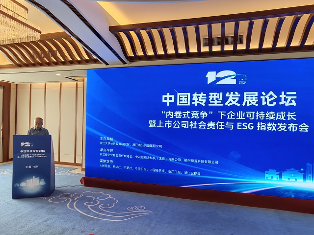 10月17日,第十二届中国转型发展论坛在杭州举行。活动由浙江大学公共政策研究院、浙江省公共政策研究院主办,浙江省企业社会责任促进会、中诚信绿金科技(北京)有限公司、杭州榜置科技有限公司承办。