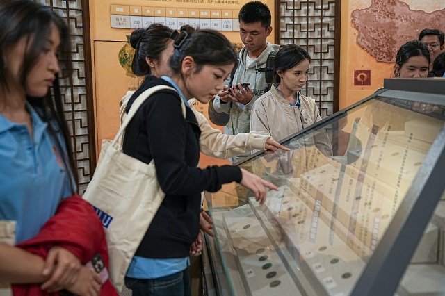 随后,大家走进逸夫计量博物馆,开启“触摸计量历史、感受科技力量”之旅。从商代骨尺到近代天平,再到现代精密仪器,大家在展品与讲解中读懂计量文明脉络。“原来计量在古代就和农业、贸易息息相关!”阿克苏学子热依拉·克孜驻足汉代铜权前,仔细聆听其重量标准器的历史。在现代计量展区,直观感受计量在国防科技领域的实际应用。量大学子徐佳欣还主动当起“辅助讲解员”,为阿克苏伙伴科普计量知识:“小到一根针,大到航天工程,都离不开精准计量。”