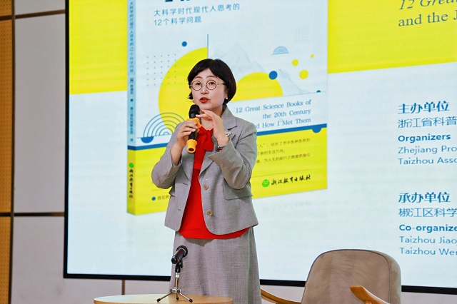 在主题分享环节,赵淑京围绕乌卡时代的特征与21世纪我们需要的创造力、批判性思维、沟通能力和协作能力,结合科普视频与PPT展示,带领现场读者走进科学思想的诞生与演进,感受科技工作者进行科学传播的心路历程。