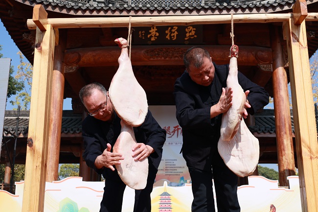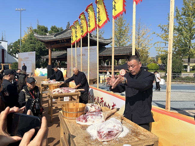 11月16日,由金华市市场监督管理局、市总工会、金华市城发集团、金华市金融控股投资有限公司共同主办的2025金华火腿开腌仪式暨第二届火腿宴系列活动在婺州古城举行。