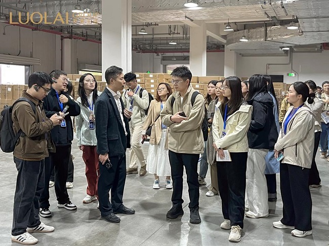 本次参观活动由罗莱生活多位相关负责人全程陪同,包括罗莱生活副总裁王梁、财务总监陈晓东、董事会秘书丁玮、超柔研究院院长郑伟、战略流程AI中心唐宝等。在他们的引导与讲解下,参访团依次走访了家居博物馆、绣花车间、悬挂线、自动化生产线、智能立库、发货平台及大店等核心区域,全面了解了罗莱智慧产业园的运营实况与智能制造整体布局。