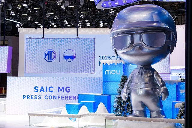 除了全新MG4全面越级的产品力,MG展台也成为本届广州车展的亮点之一:5米高的巨型银色MOLI IP装置惊艳亮相,MOLI CLUB潮玩区内多款收藏级潮玩手办打造出极具吸引力的打卡空间;半固态电池技术展区通过直观展示让观众深入了解前沿技术;独特的“冰雪”氛围装置,更为广州观众带来一场沉浸式体验,让技术创新变得可视、可感。