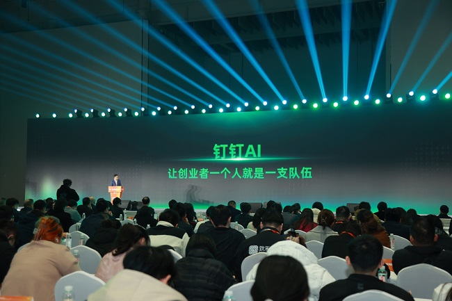 在创新创业生态分享环节,钉钉副总裁马力骏阐述了钉钉在AI时代对于创业者的全新定位:“一个人就是一支队伍。钉钉正从一款办公协同工具,全面进化为AI原生的创业基础设施平台——钉钉不再只是辅助工具,而是创业者的‘AI团队’。”