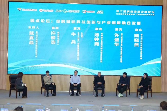 在“金融赋能科技创新与产业创新融合发展”圆桌对话中,许俊浩(晓池资本合伙人)、牛兵(宇迹私募基金管理总经理)、汤钟尧(嘉兴地方金融发展研究院常务副院长)、许盛华(浙嘉创盛资产管理总经理)、陆晓燕(嘉兴银行科创金融事业部总经理)五位嘉宾,从各自行业视角出发,围绕主题分享了实践案例与工作成果,并就赋能路径中的亮点、挑战及应对策略提出了独到见解,引发了与会成员的强烈共鸣与高度认可。