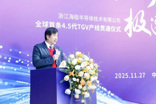 杭州富春湾新城管委会党委委员史炎丹表示:“热烈祝贺海极半导体全球首条4.5代TGV产线顺利贯通,也欢迎各位与会的专家、学者、企业家朋友来美丽的富春湾走走看看,投资在富春湾,富春湾引入上海光机所,西湖大学芯片研究院等高能级平台,构建从设计、制造到封测全产业链条。”