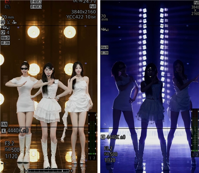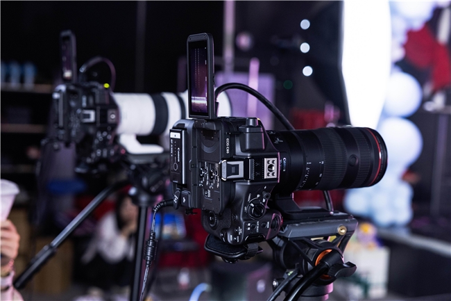 佳能EOS C80搭载6K全画幅背照堆栈式CMOS感应器,搭配RF70-200mm F2.8 L IS USM Z长焦变焦镜头,能拍摄出浅景深、背景虚化优美的高品质影像。在时拍传媒以灯光棚为主的直播环境中,该设备可精准还原服饰原色与自然清透的人物肤色,让主播呈现出兼具真实感与质感的“明星感”气色。时拍传媒技术总监梁树根高度认可:“佳能的色彩科学很能打。Canon 709模式色彩直出,拍出来的色彩还原很真实、稳定,在不同光线下都能保证肤色自然好看,这对于我们唱跳主播的呈现至关重要。”