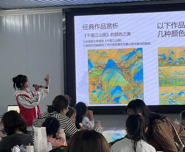 团队建立“学生主导+教师指导+家庭参与”的三方模式:学生负责活动策划、现场讲解和技法传授,在实践中检验专业知识;教师提供绘画理论、安全预案等专业指导,保障活动质量;家庭则以亲子互动的形式参与其中,让传统文化在代际交流中传承。