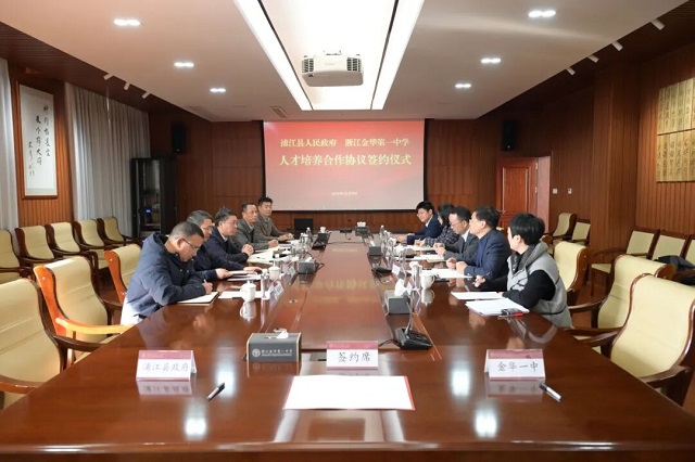 为促进城乡教育优质均衡发展,积极发挥名校优质教育资源的辐射引领作用,加快提升区域创新人才培养质量,日前,浙江金华第一中学与浦江县人民政府人才培养合作协议签约仪式在金华一中举行,浙江金华第一中学与浦江县人民政府、浦江县教育局分别签订人才培养合作协议和创新人才培养合作补充协议。