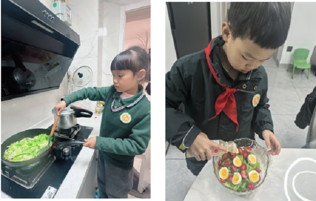 劳动的价值在延伸中绽放光彩——语文课上,采摘日记里跳跃着生动的感悟;美术课上,包菜在画笔下长出了想象的翅膀;家庭厨房里,新鲜的包菜变身为清爽沙拉、香软蛋饼、暖心汤羹。孩子们在食育体验中懂得“一餐一饭来之不易”,在创造中看见劳动如何点亮日常生活。这份“彩”,是跨学科学习的融合之光,也是劳动教育回归生活本真的色彩。