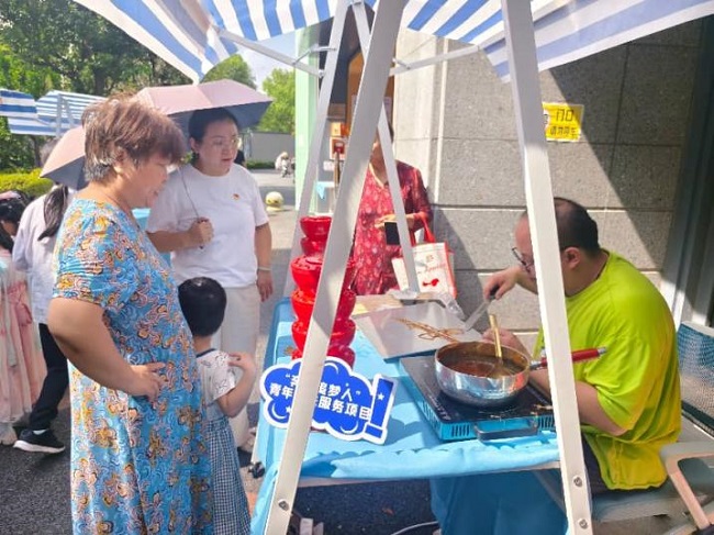 指着糖画、漆扇和塑粘土的工艺作品,华睦社区书记楼旭丽表示,“这些既是非遗技艺的活态传承,也是青年用老手艺践行公益的生动实践。这里没有商业叫卖的喧嚣,只有青年手艺人专注创作的身影,这里每一件作品都承载着“以手艺反哺社会”的初心。”