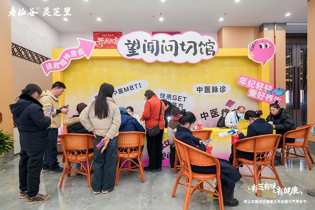伴随开业同步启幕的“2026有芝有味有健康”元气养生节(12月31日-1月3日),以趣味化、场景化设计,精准触达年轻消费群体。活动设立“望闻问切馆”“躺平快活馆”“回春手作坊”等五大互动板块,提供中医体质检测、推拿艾灸体验、中药香囊手作等项目,并结合打卡集章兑换限定礼品,增强参与感与传播性。整个街区空间设计紧扣养生主题,入口处“养生街区”艺术装置、室内巨型中药包气膜、元气补给站等打卡点,将健康理念转化为可感知、可分享的视觉语言。定制中药玩偶、NPC情景互动等创意环节,更在社交平台引发自发传播,实现线下体验与线上声量的双向赋能。