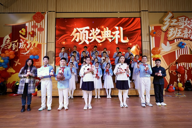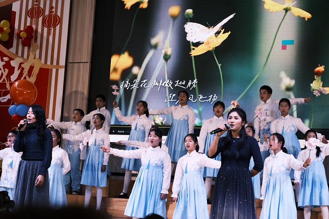 日前,杭州市大成实验学校举办主题为“红歌激壮志,班韵绽芳华”元旦文艺汇演。现场,红歌颂扬传壮志,班歌嘹亮诉同心,各类节目轮番登场,全校师生用最热烈的模样,告别旧岁,奔赴新程。