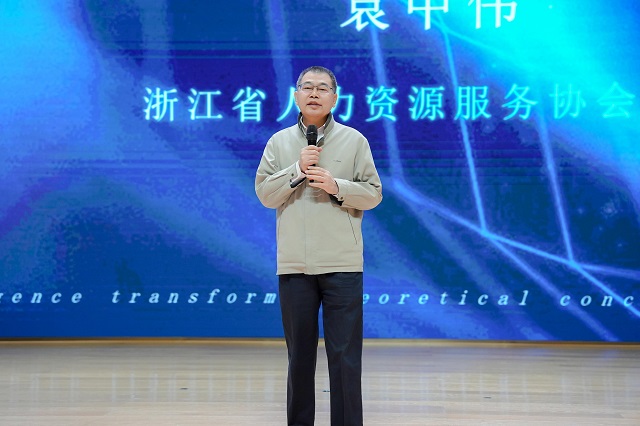 浙江省人力资源服务协会、杭州市余杭区人力资源和社会保障局是此次会议的官方指导单位。浙江省人力资源服务协会会长袁中伟在开幕致辞中表示,依据国家发展战略及现代经济体系的支撑逻辑,HR的地位前所未有的提高了。随着AI时代到来,HR必须由“管人”转向“管理由人产生的数据”。HR不仅要了解岗位职责,更要了解岗位知识库构建,要让每一位员工“制作”和“利用”智能体。