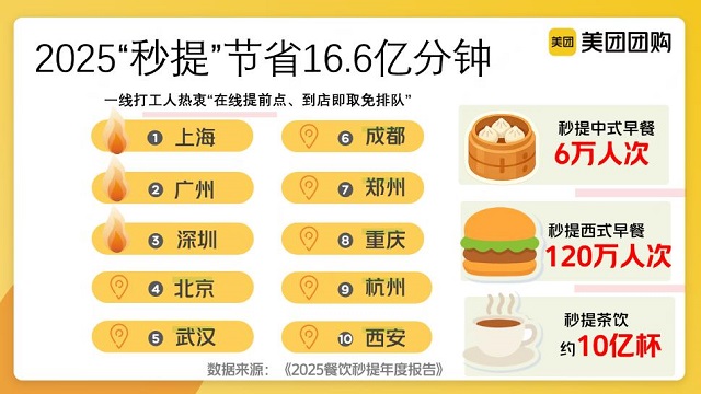 《秒提报告》显示,秒提服务已连接25万家餐饮门店,通过“在线提前点,到店即取免排队”的创新模式优化消费流程,提升门店效率,为消费者减少店内等待时间。