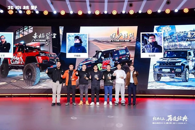 “BJ40改装佳作全民票选”活动共有十个最具代表性的作品入围用户票选环节,王昊和晋松现场为TOP5作品获奖者颁奖。