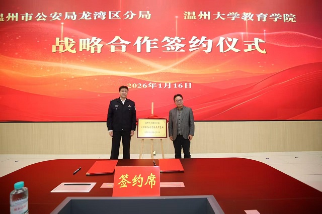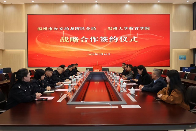 1月16日,温州大学教育学院与温州市公安局龙湾区分局战略合作框架协议签约仪式在龙湾区公安分局举行。