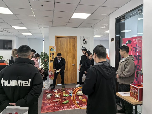 紧随其后的套圈游戏,更是将现场气氛推向新的高潮。五彩斑斓的套圈整齐排列,零食、玩偶、日用品等琳琅满目的小礼品错落摆放,瞬间点燃了员工们的参与热情。大家手持套圈,或屏气凝神瞄准目标,或轻松投掷享受过程,套中者高举礼品欢呼雀跃,未中者相互鼓劲再接再厉。一次次投掷、一声声欢笑,让节日的喜悦在指尖传递,团队的凝聚力也在互动协作中持续升温。