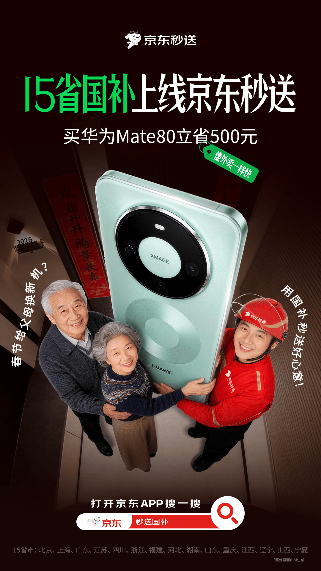 近日,京东旗下即时零售平台京东秒送宣布已全面承接2026年国补落地,北京、上海、广东、江苏、四川、浙江、福建、河北、湖南、山东、重庆、江西、辽宁、山西、宁夏共15个省份同步上线,消费者在京东APP搜索“秒送国补”,可进入国补专区,选择附近门店选购心仪的3C数码产品下单,享受小时级甚至分钟级的高效配送服务。据了解,后续还将有更多省份国补陆续上线京东秒送。