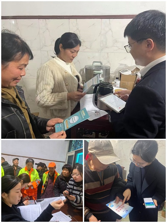 活动首站,银行工作人员走进环卫工人作业点,为坚守岗位的“城市美容师”提供上门开卡服务。在高效办理业务的同时,工作人员同步开展反诈与防范非法集资宣传,通过发放宣传折页、现场讲解典型案例,重点剖析“冒充客服退款”、“虚假投资理财”等针对务工群体的常见骗局,提醒大家保护个人信息,不轻信陌生来电,不参与非法金融活动。环卫工人们纷纷表示:“这样的服务既暖心又实用,让我们在辛勤工作之余,也学会了如何守护好自己的血汗钱。”