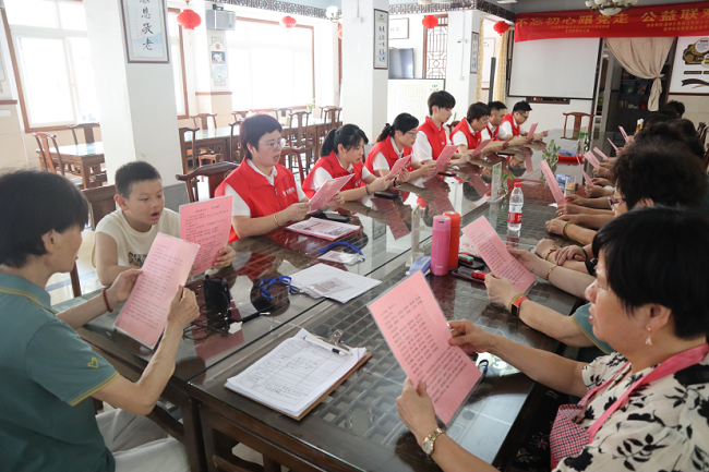龙湾雨花斋敬老院内,志愿者与老人共诵《千字文》,抑扬顿挫的声韵里,流淌着文化的传承与心灵的贴近。