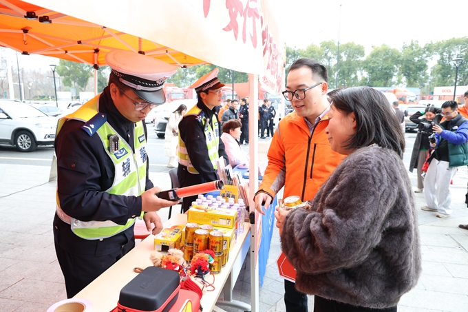 2月10日,在杭州绕城高速西湖服务区内,一场“春节风险减量公益行动”正如火如荼开展。