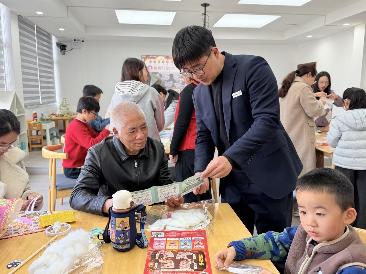 “先把竹篾压实,再贴上这层纸……”在景宁百岁山社区活动中心,温州银行景宁支行客户经理小陈正弯着腰,耐心指导孩子们安装兔子花灯。大手握小手,从折叠到粘贴,从安装到固定,当一盏盏精巧的兔子灯在孩子手中次第亮起,暖黄的灯光映在稚嫩的脸庞上,也点亮了传统文化在代际间的温情传递。“灯笼骨架要扎稳,就像理财基础要打牢。”在装饰花灯的间隙,工作人员巧妙地引入压岁钱管理、储蓄启蒙等话题,在孩子们心中悄然播下金融素养的种子。