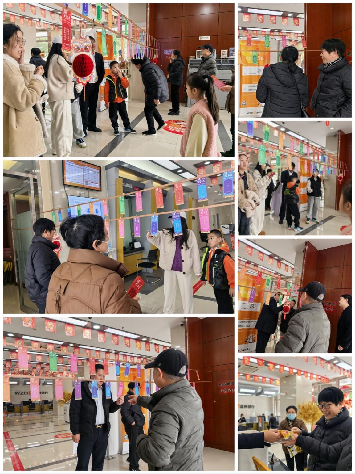 一串串色彩缤纷的灯谜条幅高高悬挂,将传统民俗与金融知识巧妙结合,谜面涵盖了元宵节传统文化、生活常识以及存款保险、反诈防骗、金融消费者权益保护等实用金融知识,既具趣味性,又有知识性。无论是老年客户,还是小朋友,都被趣味十足的灯谜吸引,纷纷驻足思考、互相讨论。“这个灯谜的谜底是不是‘征信’?”“我知道!这个是‘反电信诈骗’!”大家踊跃抢答,猜对谜底的客户都能收获一份精美的元宵文创礼品。厅堂内欢声笑语不断,原本严肃的业务办理场景,变成了充满温情的节日乐园。在客户参与活动的间隙,支行工作人员没有停下服务的脚步。他们主动上前,为等待办理业务的客户讲解金融知识,针对老年客户重点普及电信网络诈骗的常见手段和防范技巧,为年轻客户介绍最新的便民金融产品和线上服务功能。“本来只是来存个钱,没想到还能猜灯谜、领奖品,学到了防骗知识,真是太贴心了!”一位参与活动的阿姨开心地说道。
