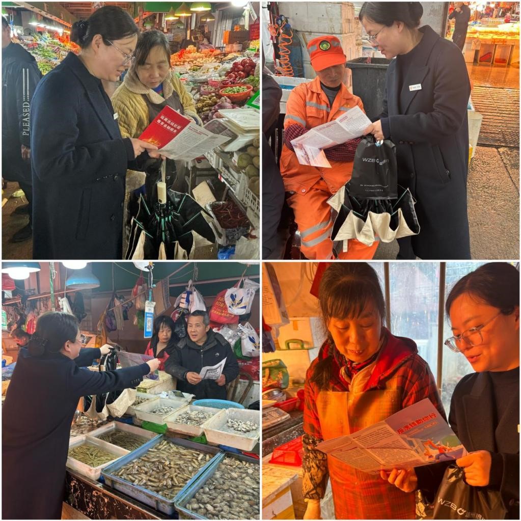 当天下午,劳动南路菜场正值采购高峰,人流量较大。黄岩支行的宣传人员在菜场入口处设立了宣传咨询台,悬挂起醒目的宣传横幅。针对菜场摊主和往来市民以中老年人居多、金融知识相对薄弱的特点,宣传人员主动“送教上门”,穿梭于各个摊位之间,用通俗易懂的方言,向摊主和买菜的市民讲解非法集资和洗钱活动的常见手段及危害。