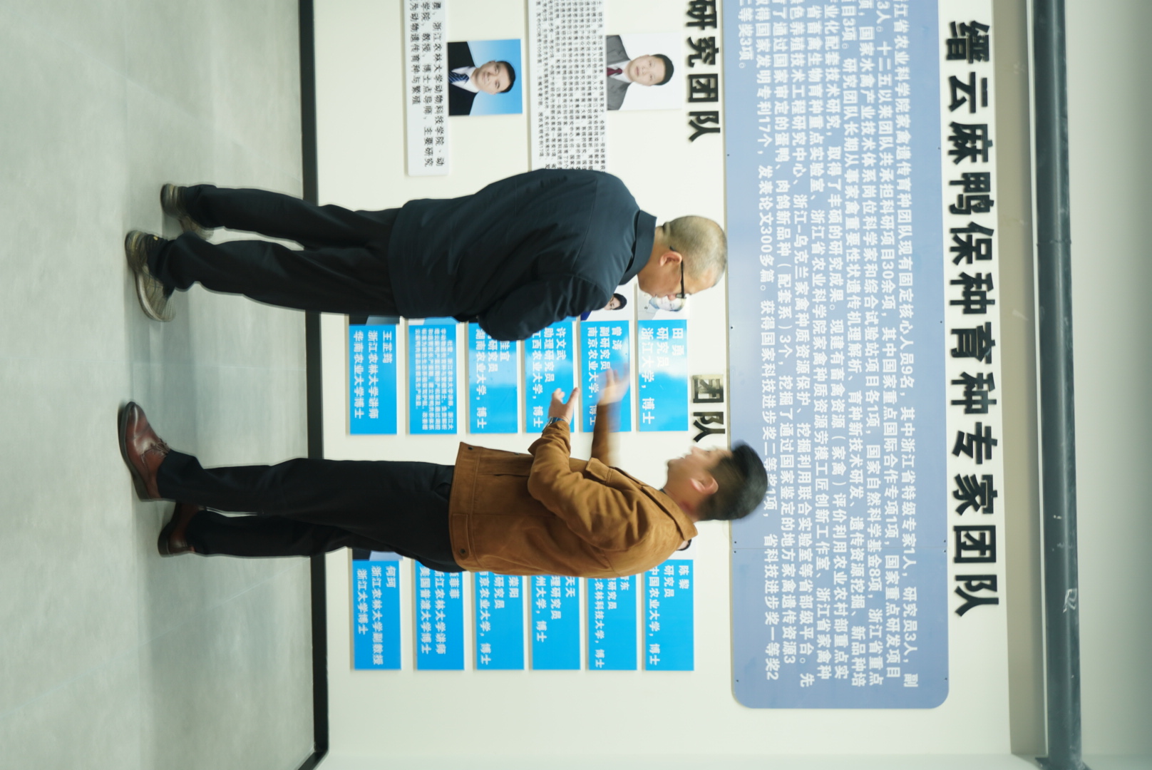 科协一行首先查看了驻院师生住宿环境等硬件设施,与驻院工作人员深入交流,详细了解传统麻鸭产业在品种更新、标准化管理、技术推广等方面的实际瓶颈。座谈会上,麻鸭科技小院负责人汇报了自2024年9月挂牌以来的建设进展。详细介绍了小院以“产学研用”一体化为目标,围绕种源保护、科技赋能、市场开拓三大核心战略,推行“小院+高校+农户”联动机制,联动国家麻鸭产业技术体系专家,重点开展分子育种、缙云麻鸭群体遗传多样性分析、公鸭血缘关系等核心技术的研究与示范推广等方面工作。