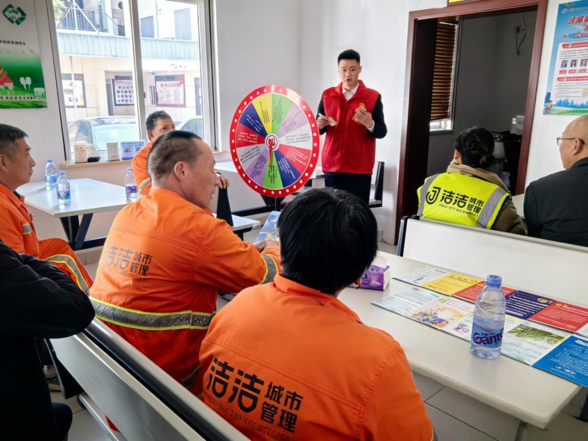 工行衢州龙游支行创新推出"方言快板+互动游戏"的金融宣教新模式。原创方言快板《守住钱袋子》以地道的龙游腔调,将存款保险、防范非法集资等专业知识转化为朗朗上口的民间唱词,引得现场环卫工人纷纷跟唱。活动精心设计了三大互动环节:一是"快板传声",通过方言快板演绎最新诈骗手法,让防骗技巧声声入耳;二是"转盘问答",将金融知识融入趣味转盘,答对即可赢取定制礼品;三是"视力辨诈",通过识别诈骗展板,帮助参与者练就"火眼金睛"。活动现场,工作人员还一对一指导手机安全设置,为50余名环卫工人筑牢了移动支付安全防线。