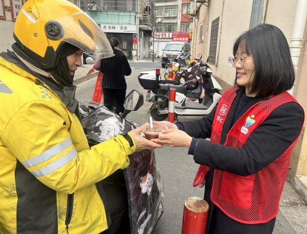 各网点精心熬制了暖心的腊八粥,软糯香甜的粥品承载着传统节日的底蕴。驿站志愿者将一碗碗热粥送到办理业务的客户、周边居民与商户手中,更专程送到环卫工人、外卖员等一线户外工作者身边,用实际行动让每一位群众在寒冬中感受浓浓的暖意与节日祝福。