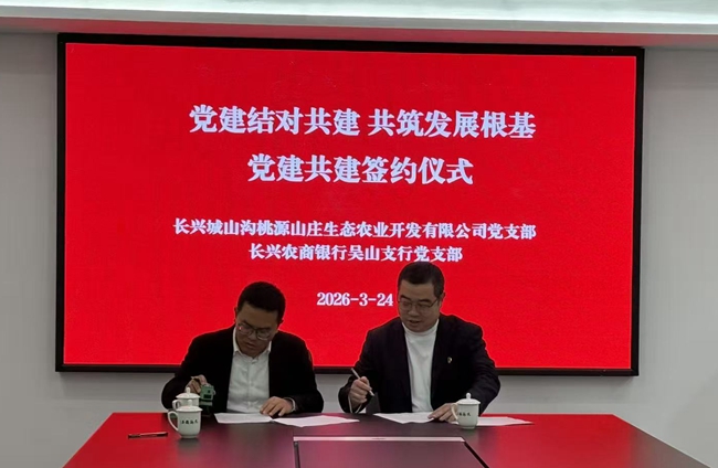 双方共同确立了“组织联建、活动联办、资源联享、发展联促”四项核心合作内容。长兴农商银行吴山支行党支部负责人表示,此次联建要通过党建纽带,将金融服务精准嵌入企业发展链条,精心打造“党建+金融+农业”的创新样板。城山沟桃源山庄生态农业发展有限公司党支部负责人表示,企业正处于转型升级的关键阶段,此次联建带来的金融支持与党建指导,为企业发展注入了强劲动力,未来企业将充分发挥产业优势,积极带动周边农户共同发展,实现企业与农户互利共赢、双向增收的美好愿景。